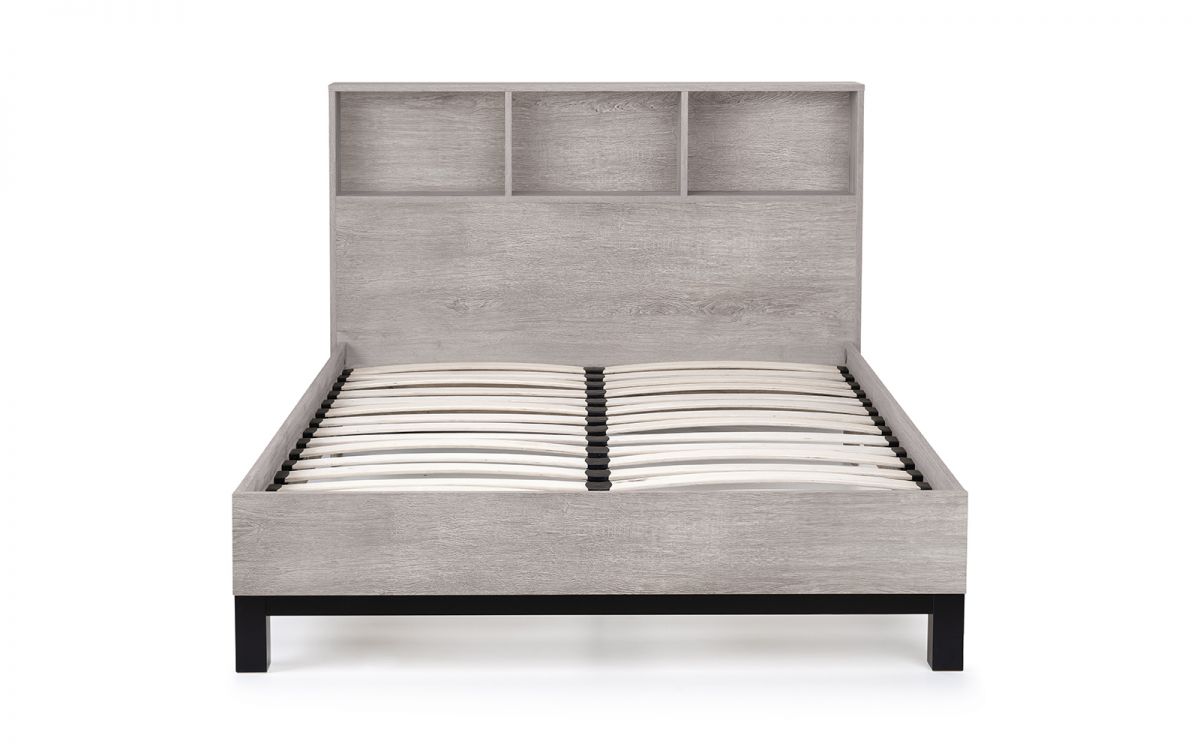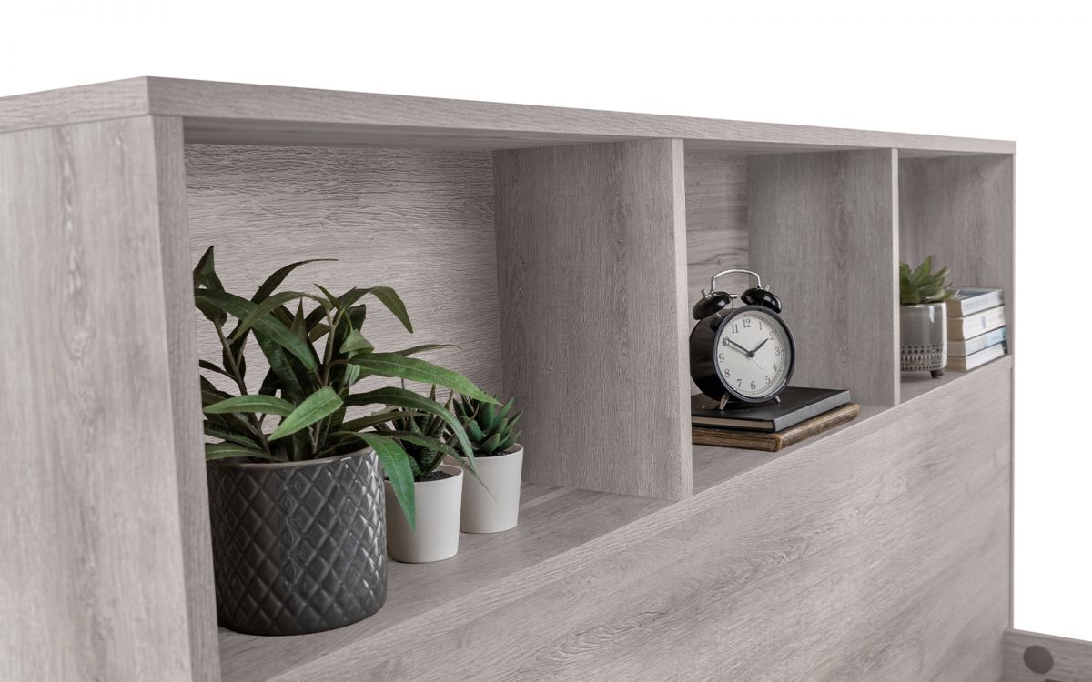 The Berridge bed combines high quality style with simple assembly. With a modern oak or grey oak finish with a handy bookcase/storage headboard and contrasting black legs, the Berridge bed creates a classic industrial look in your bedroom – leaving you with a high-quality interior, with low maintenance upkeep.